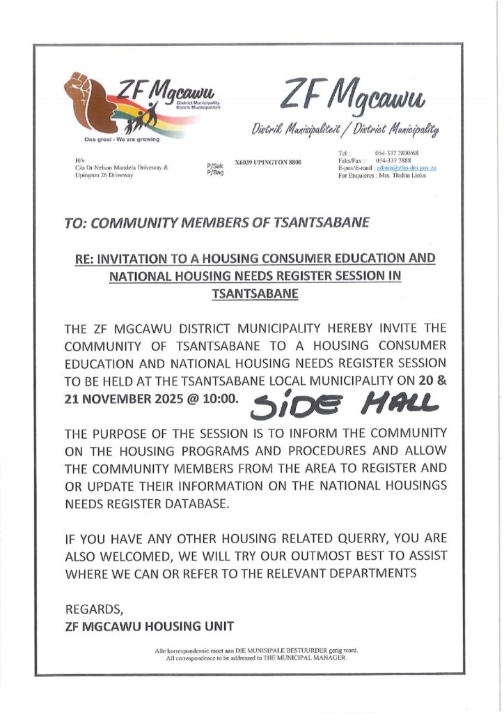 All Government Departments will be offering Services at Newtown Community Hall on 14th November 2025.